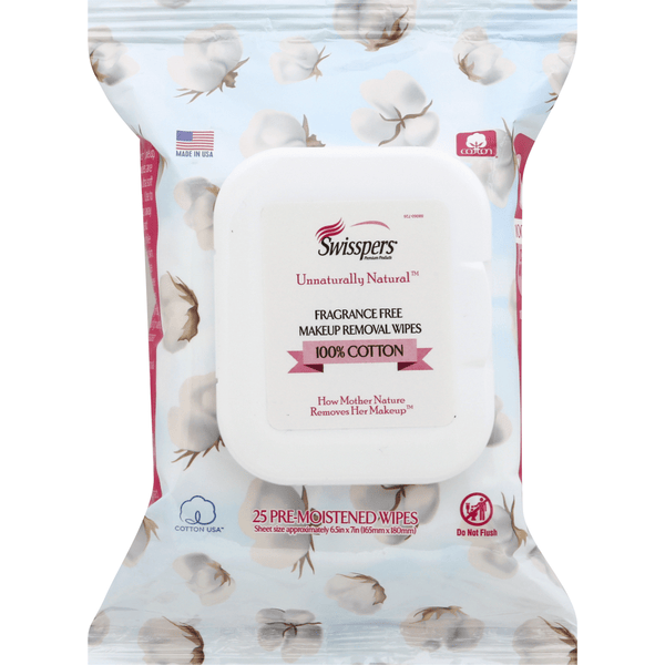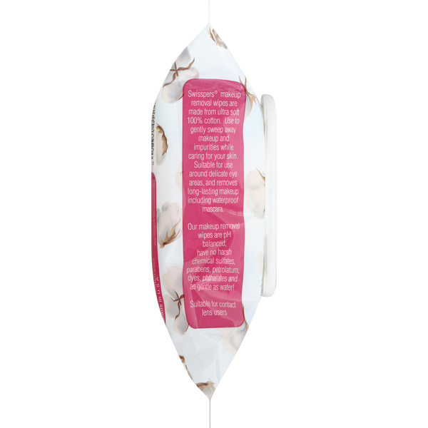 Brand: Swisspers Product Type: Makeup Removal Wipes Material: 100% Pure Cotton Fragrance: Fragrance Free Form: Soft cotton pads/wipes Skin Type: All skin types, including sensitive Use Cases: Makeup removal, skincare cleansing, travel hygiene Features: Hypoallergenic, eco-friendly, dermatologist-tested